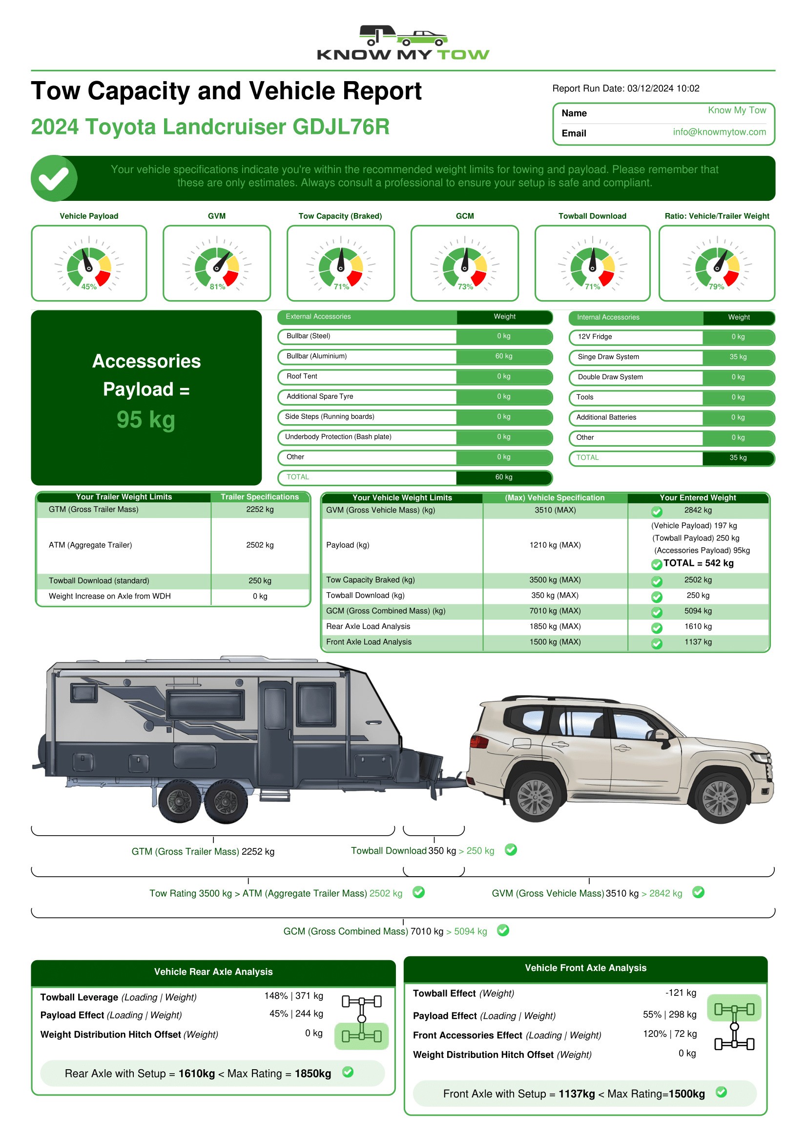 With access to a vast database of over 100,000 Australian vehicles and leveraging OEM specifications, you can ensure precision in determining your weight setup. Whether you're towing trailers, campers, or heavy loads, rely on Know My Tow for accurate assessments tailored to your needs.