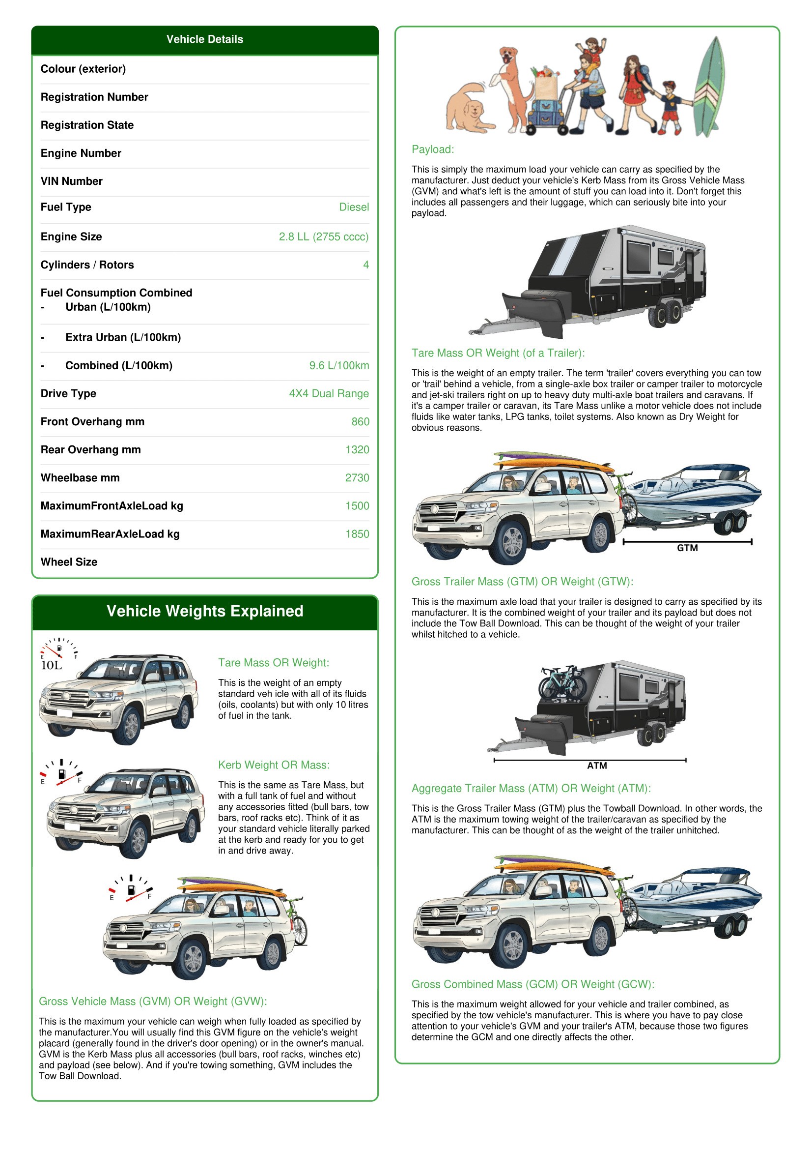 What is: Curb Weight, Payload, GVM gross Vehicle mass & GCM gross combined mass?